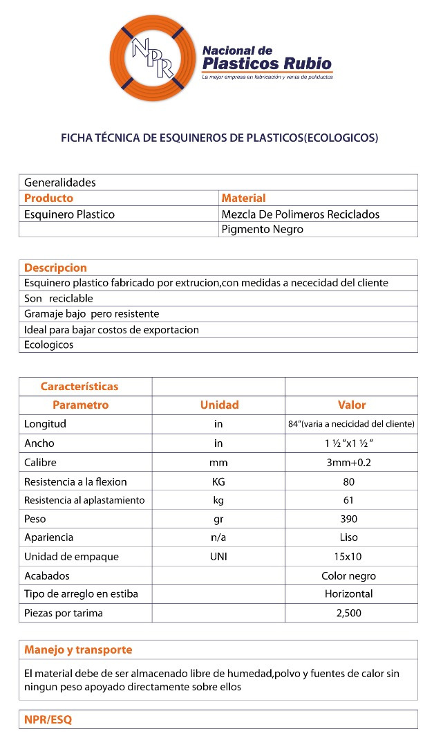 Fabricación de esquineros de plástico en color negro y en diferentes medidas como: